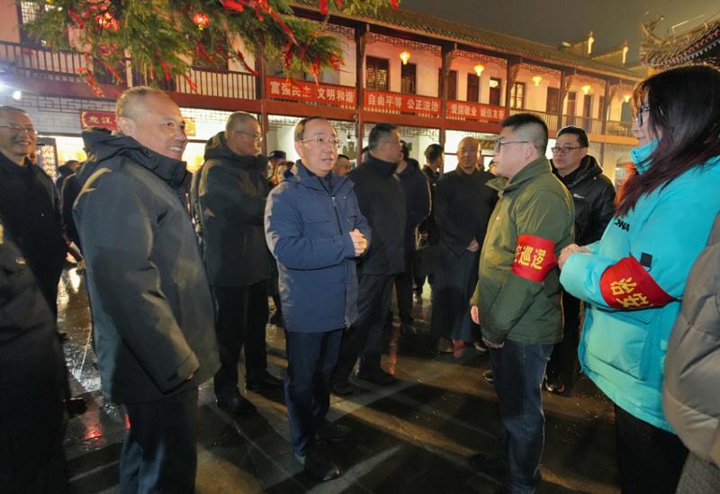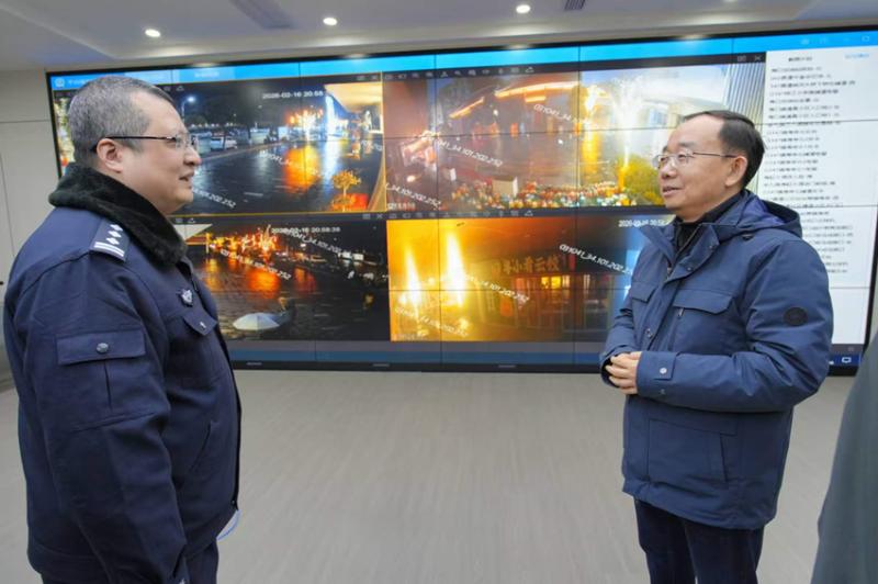 2月16日,农历除夕,万家团圆、灯火可亲。当晚,市委书记孟景伟深入迎江寺和大观区海口镇,实地检查节日安全保障、烟花禁限放等工作,亲切看望慰问坚守岗位的一线人员,向大家致以新春问候和诚挚感谢。他强调,要牢固树立“群众过节、干部过关”意识,抓实抓细安全稳定各项工作,当好人民群众的平安“守夜人”,确保城市安定、人民安宁、佳节祥和。市领导关家涛、唐厚明参加。