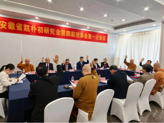 会议听取了张时民所作的安徽省赵朴初研究会第三届理事会工作报告;会议就研究会换届筹备等有关工作进行了说明,期间召开了安徽省赵朴初研究会第四届理事会第一次会议。会议选举产生了第四届理事会及理事会常务副会长、副会长、常务理事,章松当选为常务副会长,赵广、卓龙华、程玉梅等13人当选为副会长;会议表决通过了秘书长、副秘书长、法定代表人名单,审议并通过了《安徽省赵朴初研究会章程(审议稿)》《安徽省赵朴初研究会选举办法(草案)》等;会上通过了会议决议,并为新一届理事会理事代表颁发了聘书、证书,会议还举行了授牌、赠书仪式。