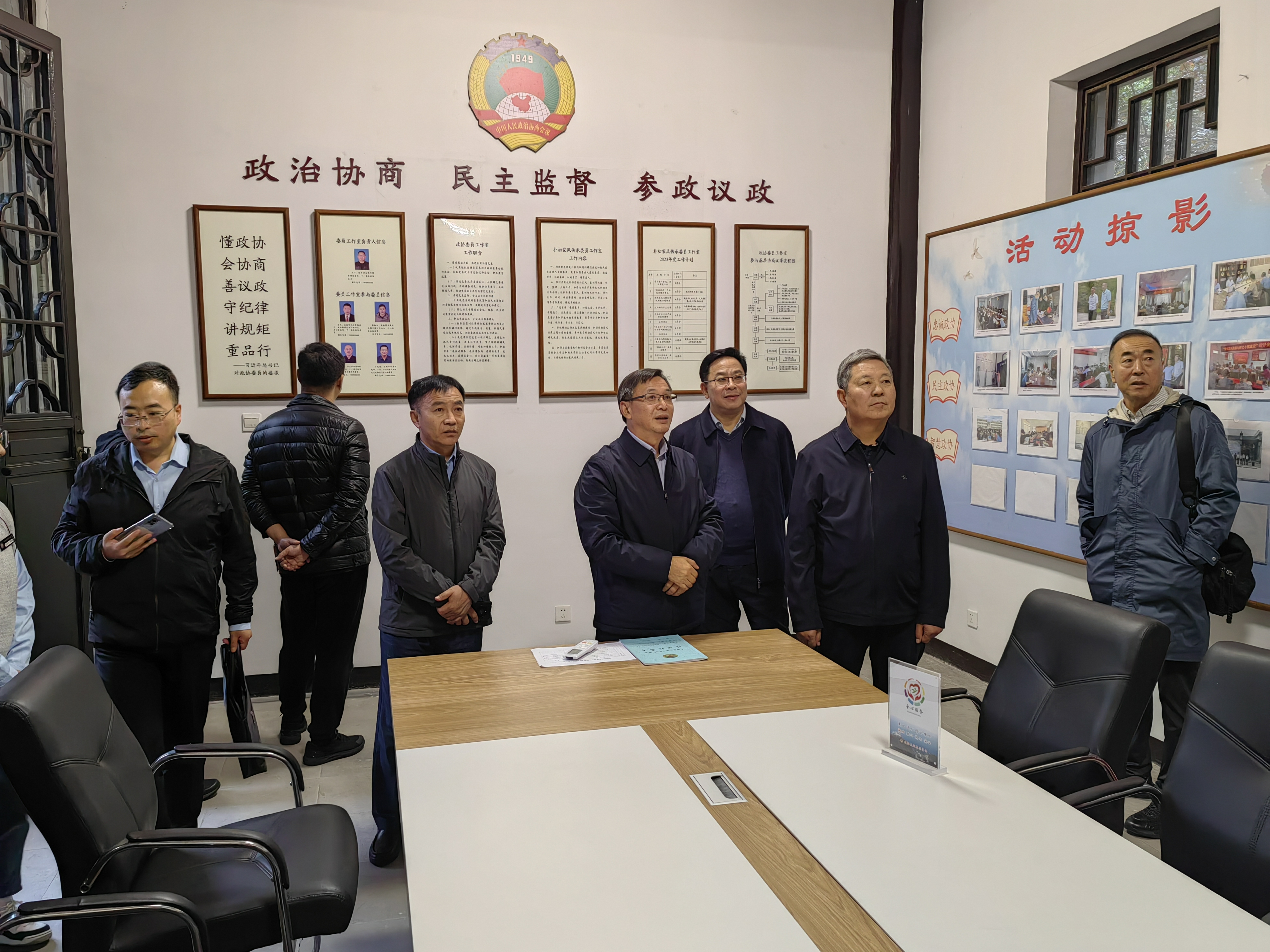 调研组一行先后深入太湖县医药卫生界别活动室、朴初家风传承委员工作室和寺前镇委员联合工作室,实地考察调研委员工作室(界别活动室)、社情民意信息站、协商议事厅“三位一体”建设情况,并围绕委员履职平台建设管理、社情民意信息工作、市县政协机构设置、委员管理等方面进行了深入交流。