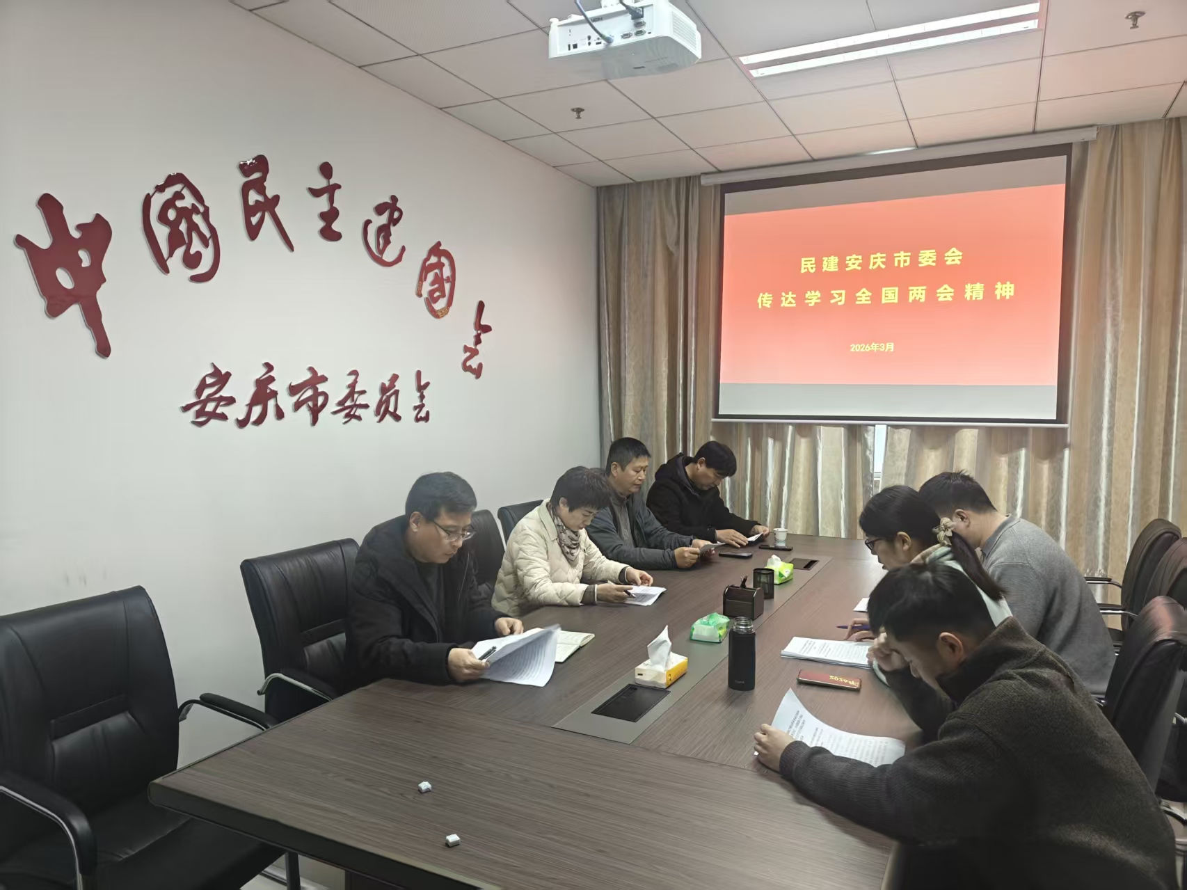 3月17日,民建安庆市委会召开专题学习会议,传达学习全国两会精神。安庆市人大常委会副主任、民建安庆市委会主委朱菊云主持会议并讲话,市委会常委班子成员及机关全体工作人员参加会议。