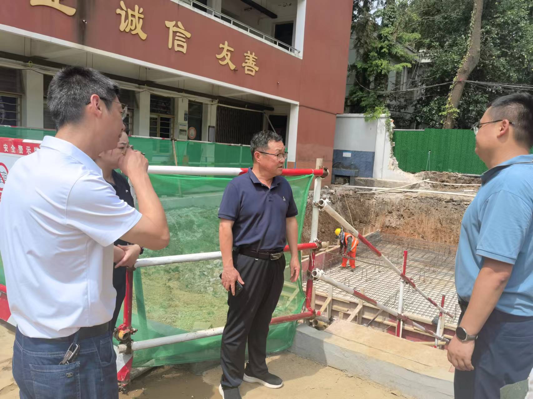 汪俊启一行深入高琦小学施工现场察看功能室建设情况。他要求,要注重工程质量和进度,注意施工安全和高温作业安全,把一号提案办成示范案例,把功能室建设成精品工程,切实改善高琦小学办学条件。