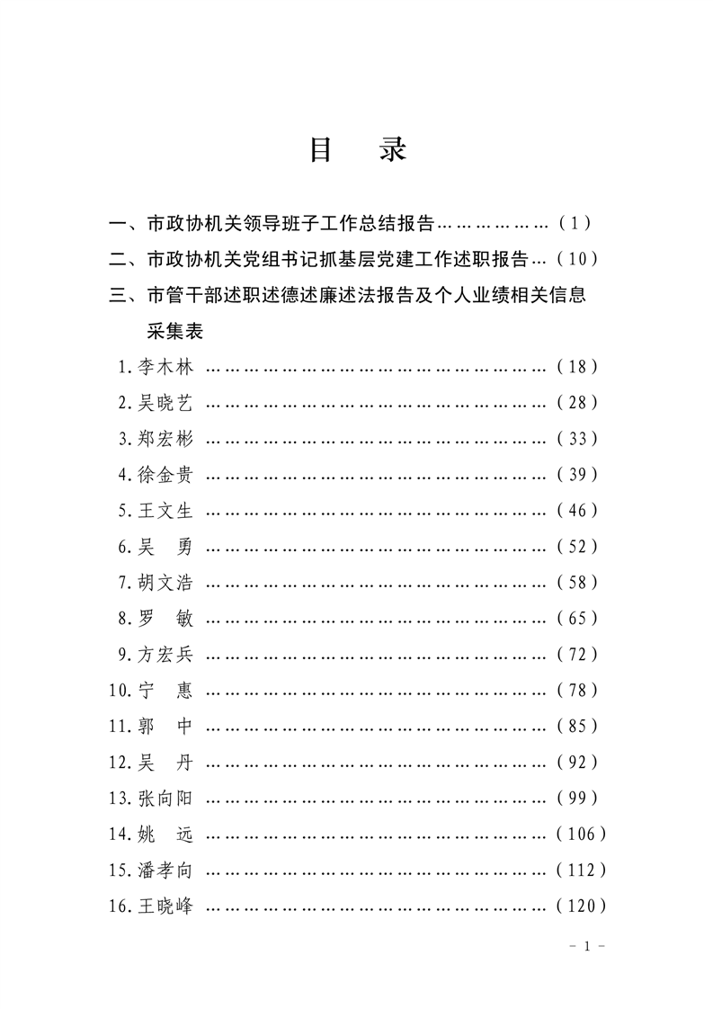 机关领导班子总结报告、市管干部述职述德述廉述法报告及业绩相关信息采集表汇编