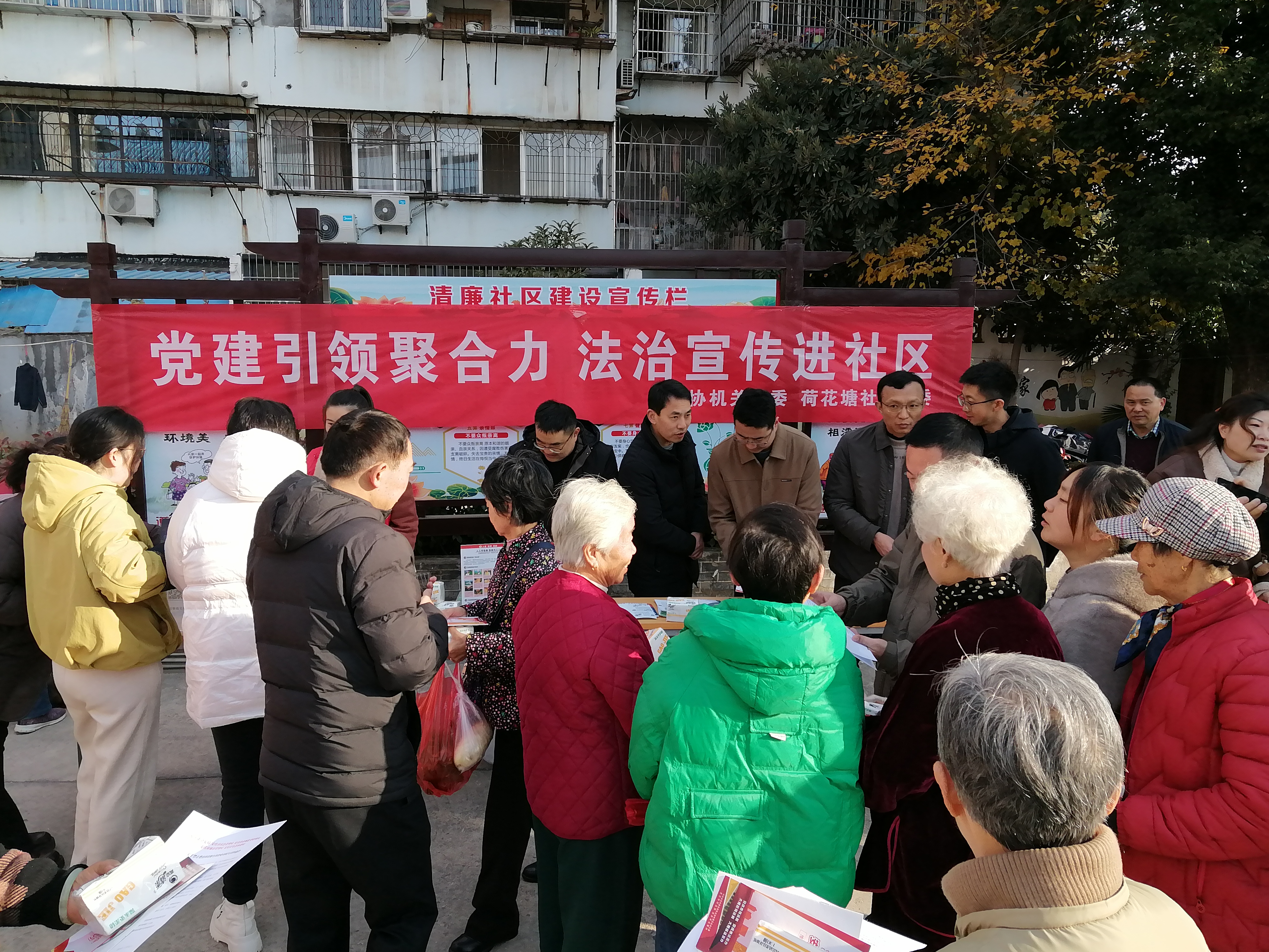 此次活动充分发挥党建引领作用,机关党员们与社区工作人员组成普法宣传队,针对居民关心的物权、婚姻家庭、老年人权益保障等问题,队员们给予了耐心细致的解答。现场还通过悬挂宣传横幅、设立法律咨询台、发放普法读本及宣传册等多种形式,向社区居民生动宣传宪法知识及与日常生活密切相关的法律法规,增强法治观念。